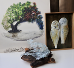 - Glasobjecten , surrealistische kunst, schilderijen.