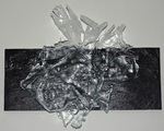 2015Glassculptuur verbeeld water, met smeltend sneeuw / ijs. Materialen met zich meeslepend. Het kan hangen ,staan en liggen.