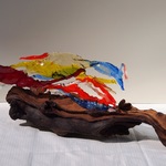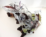 2015Glassculptuur verbeeldend ,water met daarin bladeren met veenhout. i.p.b.