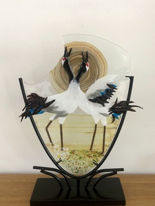 2012Vreemd gevormde glazen schaal met vreemde vogels