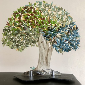 Levensboom 140x160 cm hangt in de oude kerk van Sleen Drenthe Deze staat aan het begin of eind van route 6 en 7 van het Pieterpad.