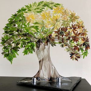 2021De stam met het bladerendek. De seizoenen verbeelden, doorlopend in het water.