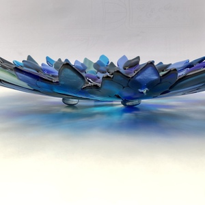 Blauwe bladerenschaal, de kleur verbeeld de kou.